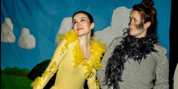 Mutige Außenseiter: Kindertheaterstück „Das hässliche Entlein“ im Horizont Theater – Bühne 12/18 Wer denkt, man könne mit Kindern im Winter nur zu aufwendig inszenierten Musicals oder etwa Eisprinzessinnen-Shows gehen und deswegen erst gar nicht geht, liegt falsch und tut den Kindern damit unrecht. Das beweist das Stück „Das hässliche Entlein“ an diesem Mittwochvormittag im Kölner Horizont Theater. Gespannt und interessiert starren die Augen der Sprösslinge auf den Antihelden des heutigen Theaterstückes von Regisseur, Schauspieler und Autor Aydın Işık: Im Mittelpunkt des Geschehens steht hier keine makellose 0815-Beauty, sondern im Gegenteil ein verlorenes, gar hässliches, graues und dickes Entlein, das sogar von den doofen Wasserflöhen gehänselt wird. Antiheldenhaft und anti-darwinistisch ist schon das Ei des Nachzöglings vor dem Schlüpfen kleiner als das seiner Geschwister. Die massive Schale symbolisiert das versteinerte Kind zu Beginn des Lebens, das gar nicht aufbrechen will. Stattdessen ist es ein Spätzünder. Nachdem die schöne gelbe Schwester „Enteli“ (Signe Zurmühlen) zunächst verwundert ist, wie lange es dauert, bis ihr Schwesterchen geschlüpft ist, und wie diese aussieht, versucht sie fortan, der allem Anschein nach hässlichen „Grauline“ (Lisa Heck) Flöhe-Jagen beizubringen, Schwimmen, Fliegen und Paddeln. Doch vergeblich. Zu tollpatschig benimmt sich die naive, vermeintlich unschöne Nachzöglerin. Alsbald schlüpft die quietsche-gelbe Schwester in die Rolle einer meckernden Casting-Agentin: „Du fliegst nicht richtig! Du schwimmst ja ganz komisch! Wie siehst du überhaupt aus?“, sich dabei stets Unterstützung aus dem kindlichen Publikum holend, dieses quasi in den Mobbing-Prozess aktiv mit einbindend.